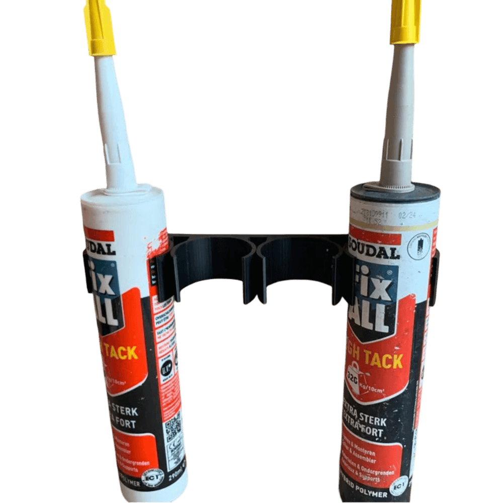 Fremstillet i slidstærkt og let plastmateriale – typisk 3D-printet – er holderen både robust og let at transportere. Den kan placeres direkte på en hylde, i en skuffe eller fastgøres til væggen, afhængig af dit behov. Med en fugepatron holder undgår du spildplads og rod, og dine fugepatroner står altid lige ved hånden, klar til brug.